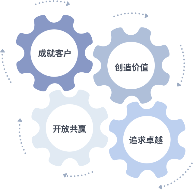 成就客户是一切决策的出发点,创造价值是衡量所有工作的标准,追求卓越是雀魂majsoul做事做人的态度,开放共赢是雀魂majsoul的格局也是最终的结果。价值观的齿轮环环相扣,推动着组织里的每个人不断向前。